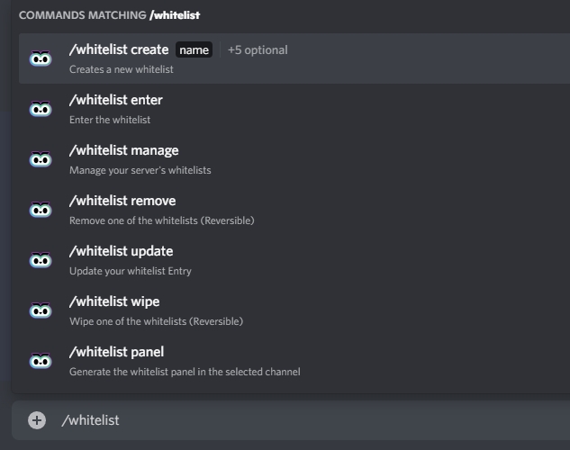 Just type /create or /whitelist create to start making your whitelist